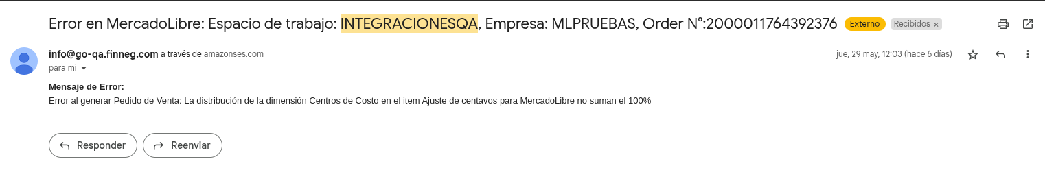 Indicando en el asunto, el nombre de la Aplicación, espacio de trabajo y número de pedido, y en el cuerpo de mail un detalle con el error.