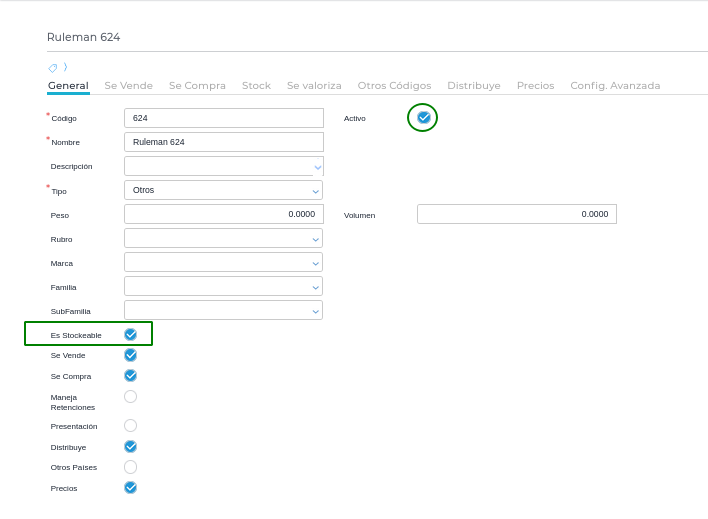 - No controla stock: el sistema no verifica la existencia del producto en el depósito indicado en la operación. Esta configuración se debe usar a discreción, ya que puede ocasionar el registro de stocks negativos. Se recomienda analizar previamente su implementación con un consultor.