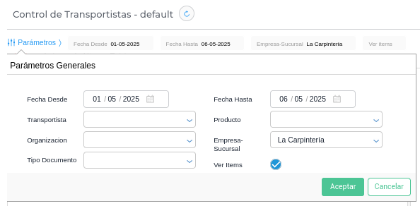 - Fecha desde / Fecha hasta: se muestran en el informe todas aquellas transacciones cuya fecha esté comprendida en estos parámetros.