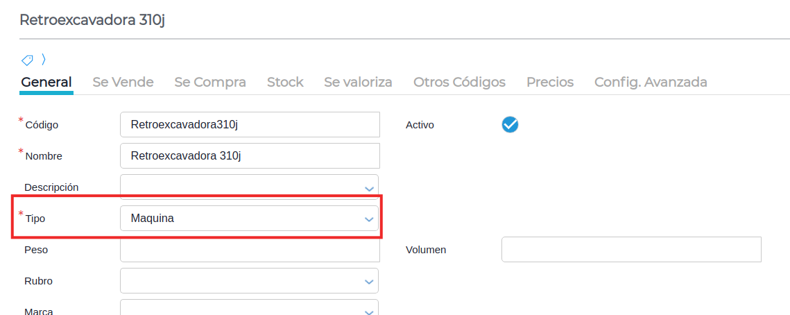 Ingresar al Maestro de “Máquinas”/“Máquinas constructoras”.