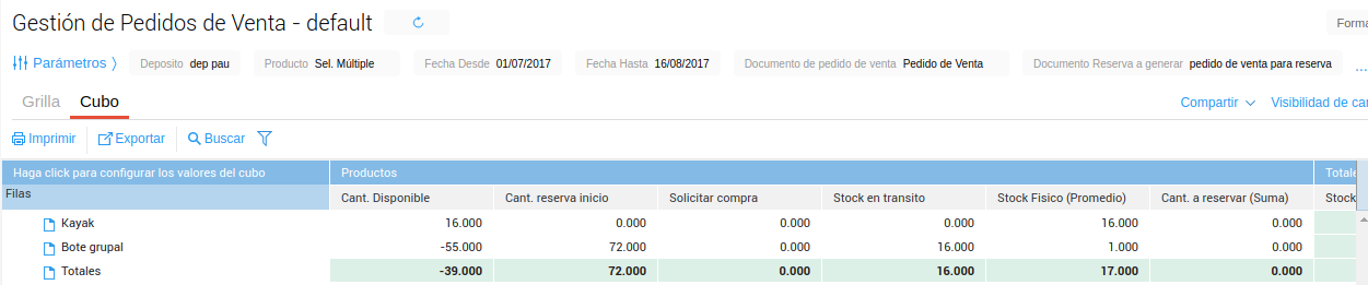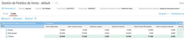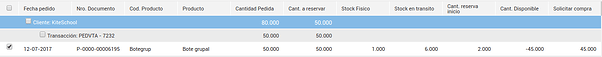 Solicitar compra: en esta columna se muestra la cantidad de productos que se deben comprar para cumplir con la reserva solicitada. Esto es = cantidad disponible - la cantidad a reservar.