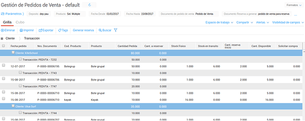 - Por cliente: se genera un documento de reserva por el total de pedido de un mismo cliente.