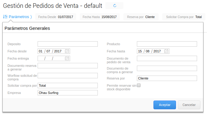 - El documento de reserva a generar, puede generarse por Pedido o por Cliente, según lo indicado en los parámetros.