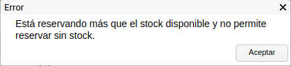 Este botón se comportará de forma distinta si se indicó en los parámetros que se Permite reservar sin stock disponible o no.