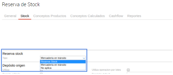 En los tipos de documento, en la solapa stock, se agregó el apartado Reserva Stock con el campo tipo donde se pueden seleccionar 3 opciones: