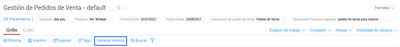 - En la toolbar de la grilla, se encuentra el botón Generar Reserva.
