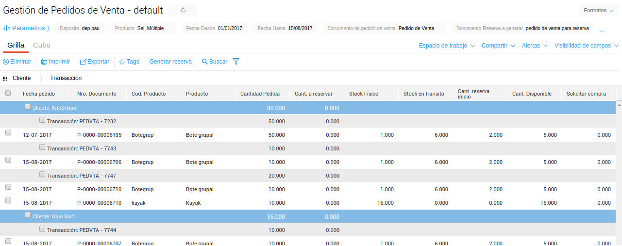 Cliente: las reservas se realizan por Cliente sin importar si los pedidos se realizaron en distintos documentos. Es decir, se genera un documento de reserva por cliente.