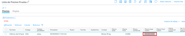 Para la edición de precios, sólo hay que que presionar sobre el campo “Precio base nuevo” y tipear el nuevo precio: