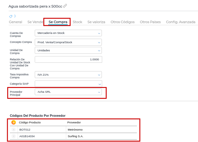 Una vez dentro del producto, en la solapa “Se compra” se puede configurar los proveedores a los cuales compramos el producto, o incluso si alguno de dichos proveedores es el proveedor puntual. Esto es importante tanto para realizar la posterior lista de precios de compra, como para confeccionar la lista de precios de costo.