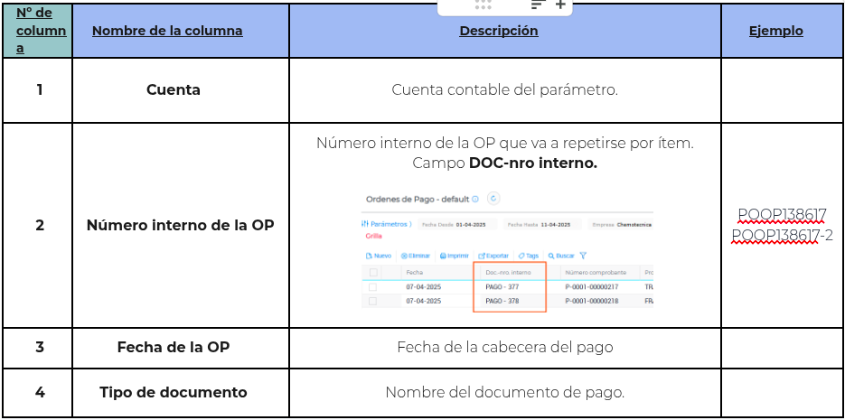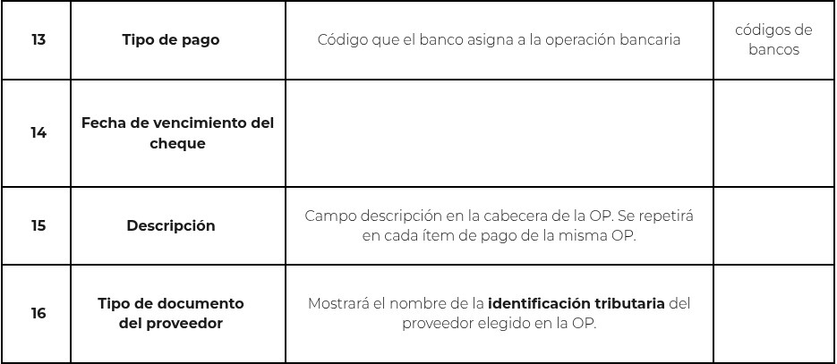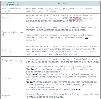 Según la operación bancaria elegida, se filtrarán los ítems de las órdenes de pagos que mostrará el informe.