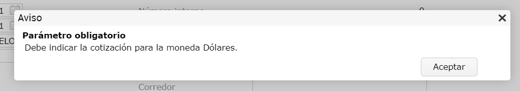En los casos en los que la cotización del dólar es distinta entre el momento de facturación y el momento del cobro, el sistema brinda la posibilidad de reconocer la pérdida o ganancia por diferencia de cambio. Normalmente esta diferencia de cambio se reconoce a partir de documentos llamados Nota de Crédito por Diferencia de Cambio y Nota de Débito por Diferencia de Cambio, dependiendo el caso. Estos documentos se crean automáticamente al guardar la cobranza y se deben generar con cotización del dólar 0, para no impactar en moneda secundaria. Es esa la cotización que, en este caso, el sistema no encuentra para la moneda dólares.