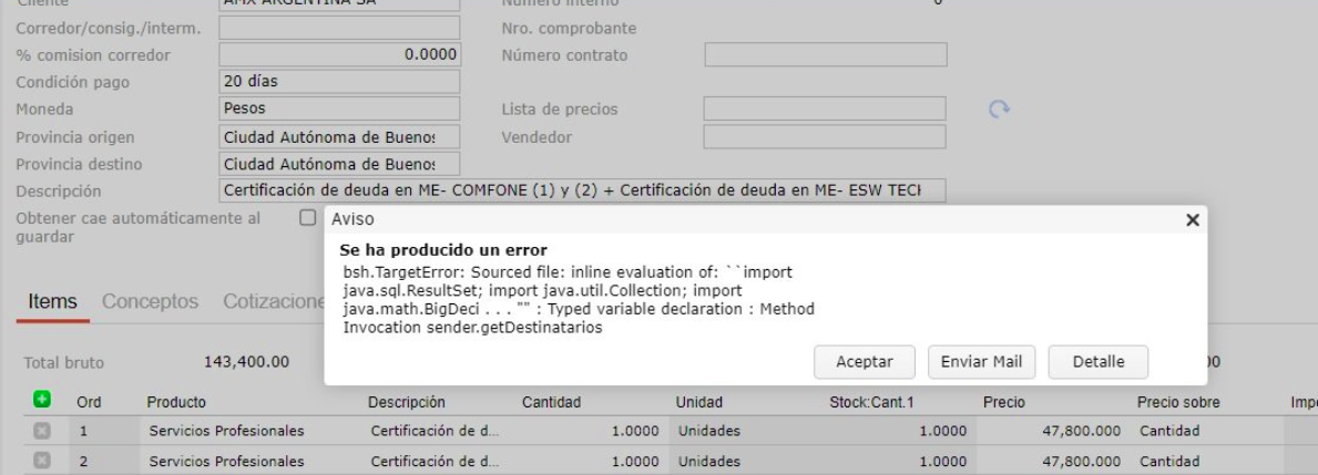 - Una vez efectuada la configuración se va a poder guardar la factura.