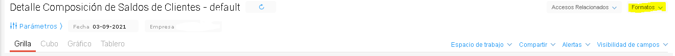 El sistema permite guardar formatos particularizados de vista dominio (para todos los usuarios) y de vista usuario (para el que esté conectado en ese momento).