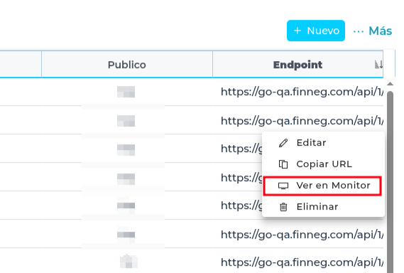 Posicionarse sobre el script: En la grilla de scripts, selecciona el script del cual deseas ver el monitor.
