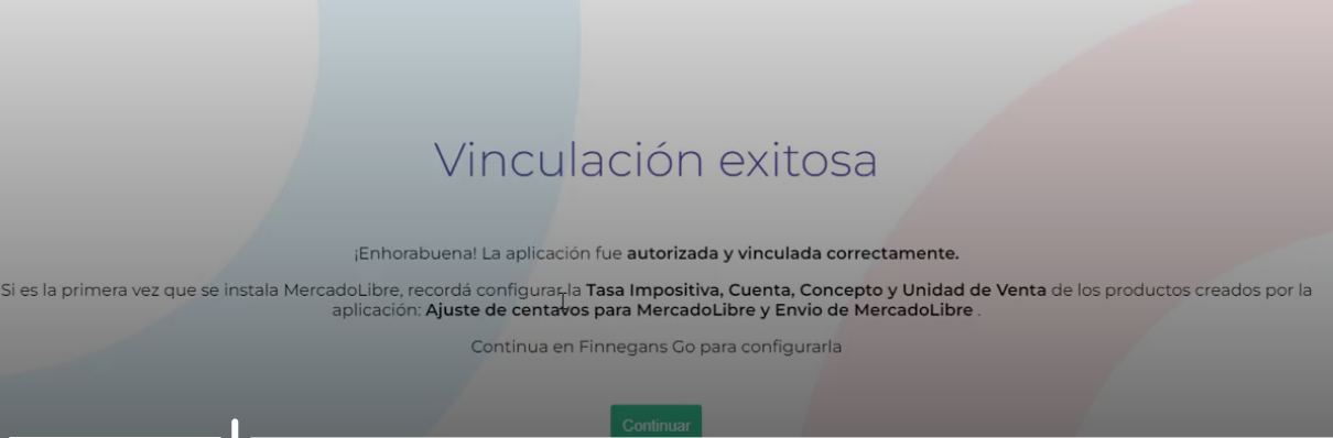 - Al vincular la cuenta por primera vez, el sistema creará automáticamente dos productos necesarios para la operación: “Ajuste de centavos para Mercado Libre” y “Envío de Mercado Libre”