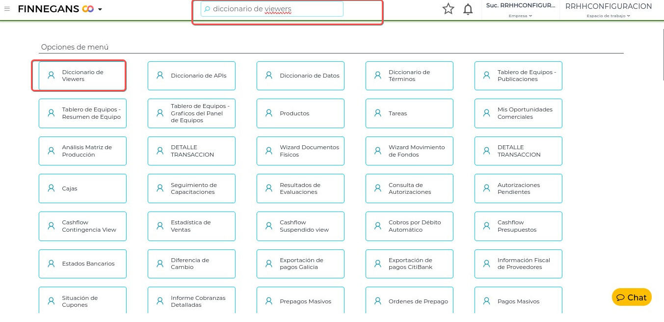 1- Ingresar en el buscador “Diccionario de Viewers” y seleccionar el Maestro de Viewers.