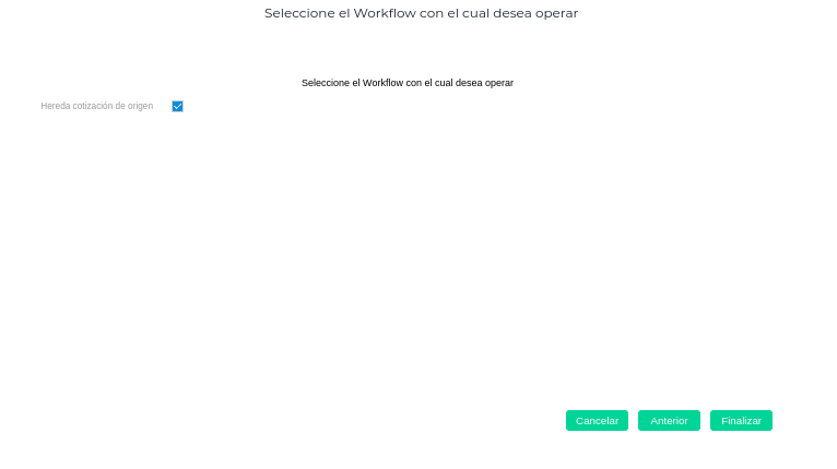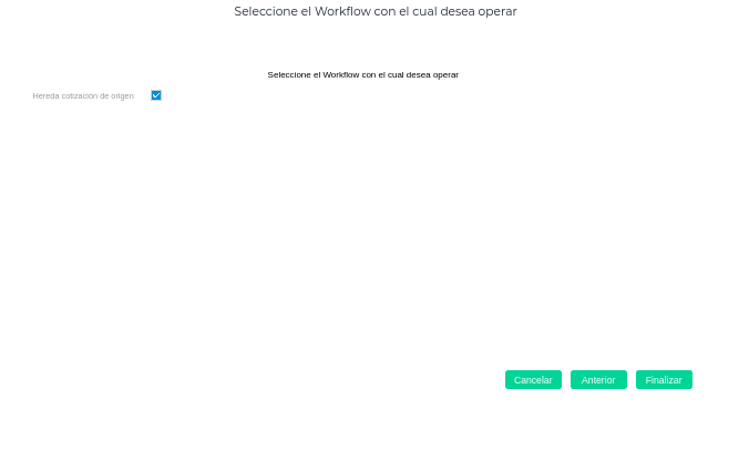 - El check “Hereda cotización de origen” se muestra tildado, destildado y/o editable, según la configuración del workflow, en esa relación origen-destino.