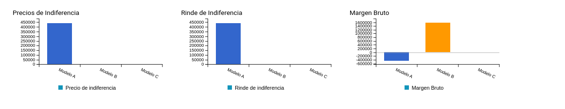 Rindes de indiferencia: simboliza la producción necesaria a obtener para que el MB se haga 0. Corresponde a la suma de los (costos directos + comercialización) / Precio.