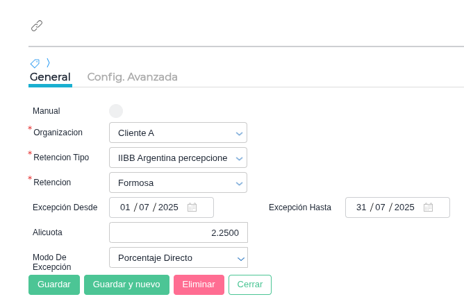 Modo de excepción: porcentaje directo.