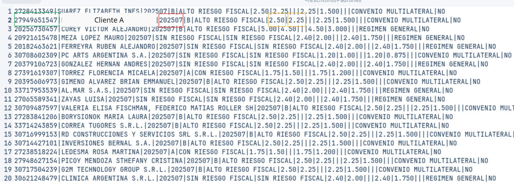 Este padrón informa las alícuotas de retención y percepción de los CUIT que se encuentran en estado de Riesgo Fiscal.