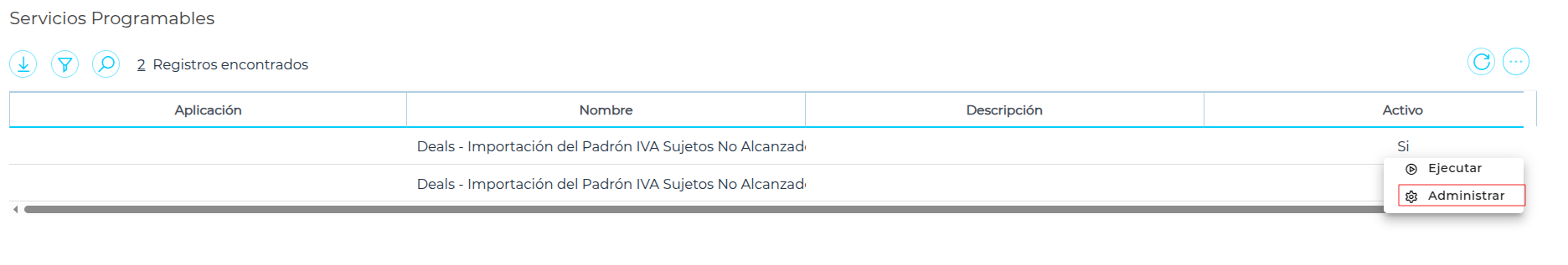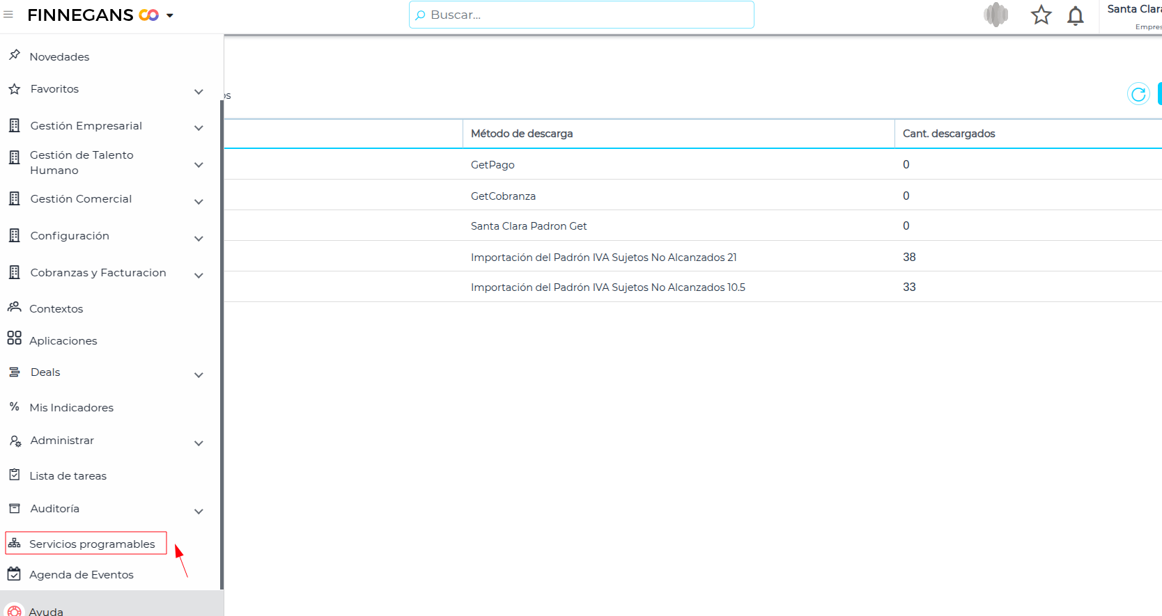 Para la ejecución automática de dicho padrón es necesario la creación de servicios programables, para llevo dirigirse al → Menú → Servicios Programables
