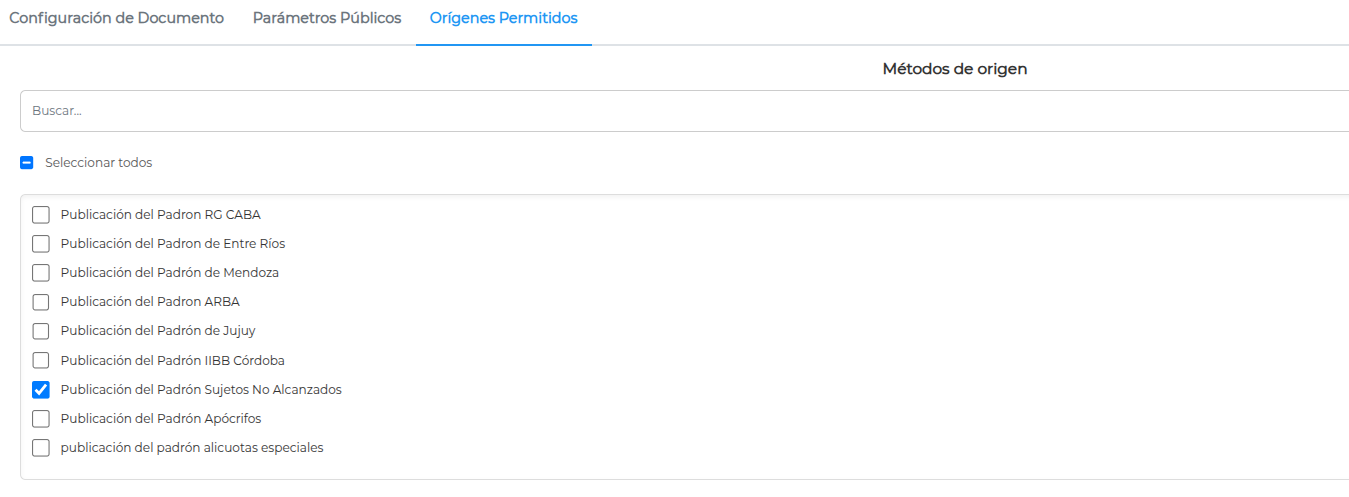 En “Origenes permitidos” se vuelve a seleccionar “Publicación del Padrón Sujetos No Alcanzados”