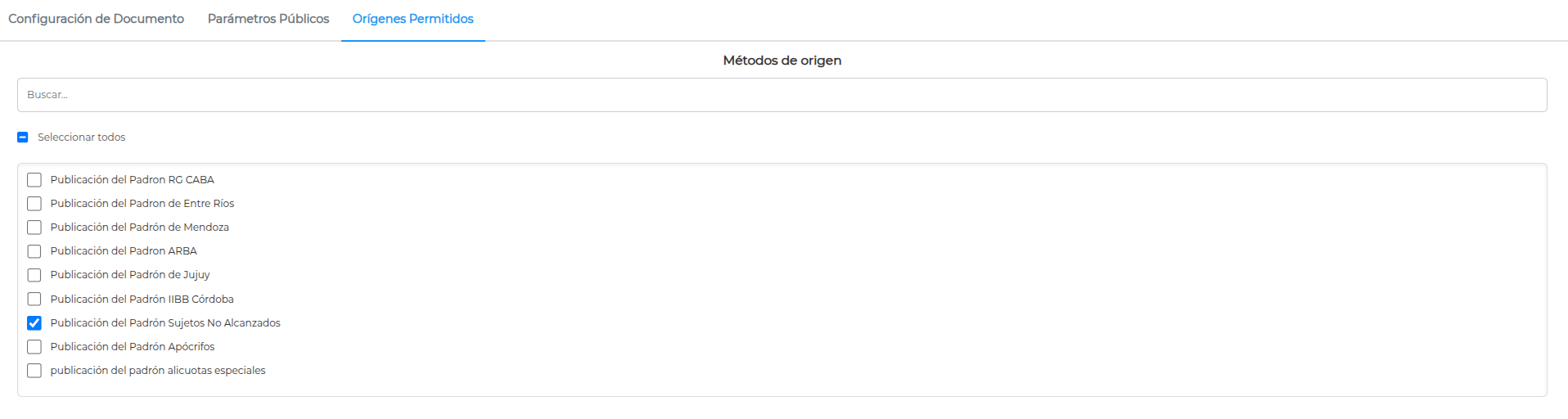 En la solapa “Orígenes permitidos” seleccionar “Publicación del Padrón Sujetos No Alcanzados”