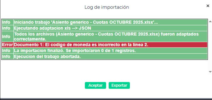 Al importar un Asiento genérico se visualiza el siguiente mensaje: