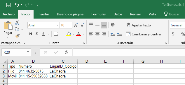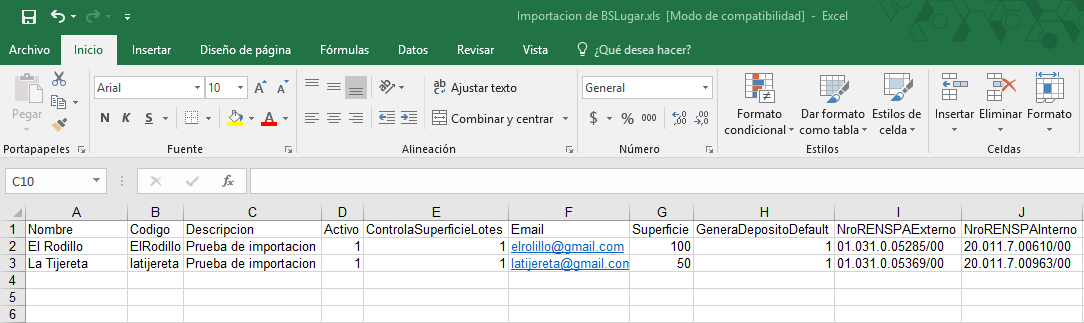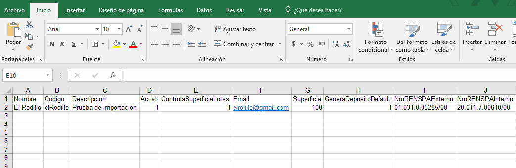 Los campos presentes en dicho importador son:
