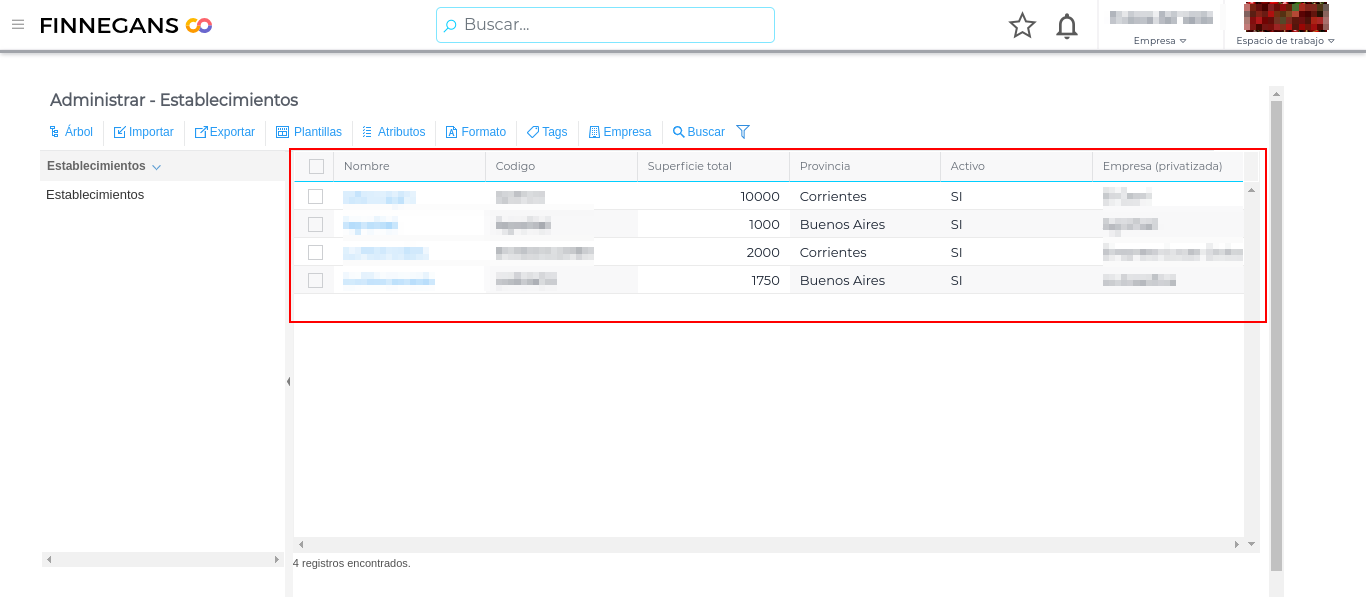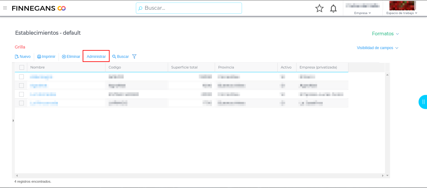 Al ingresar, se presenta la lista de establecimientos, para importar nos dirigimos al botón administrar: