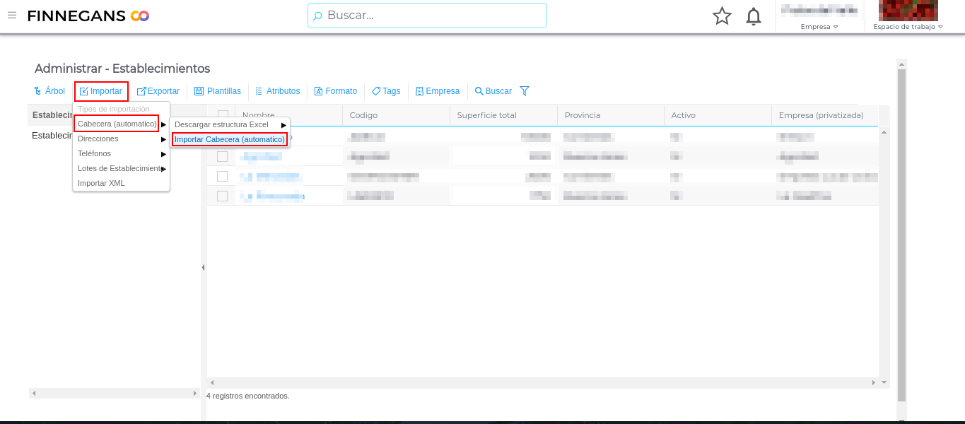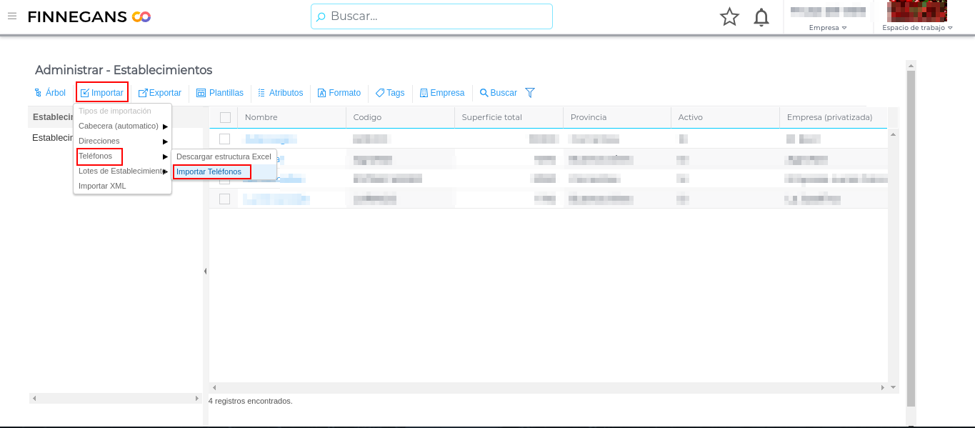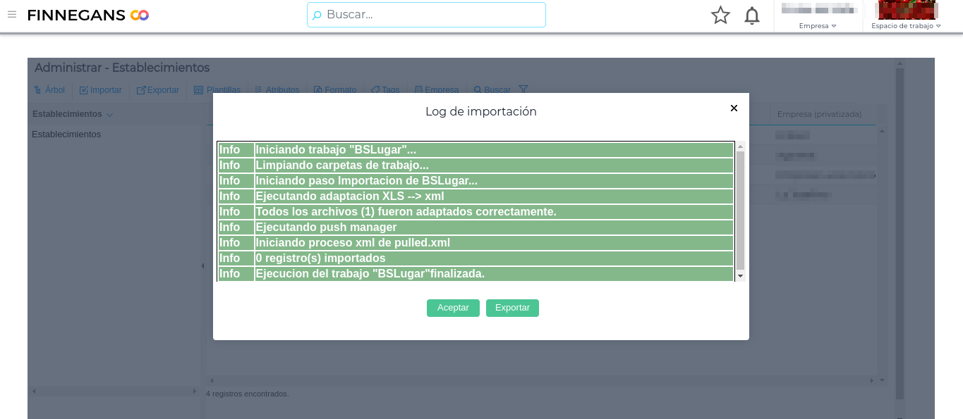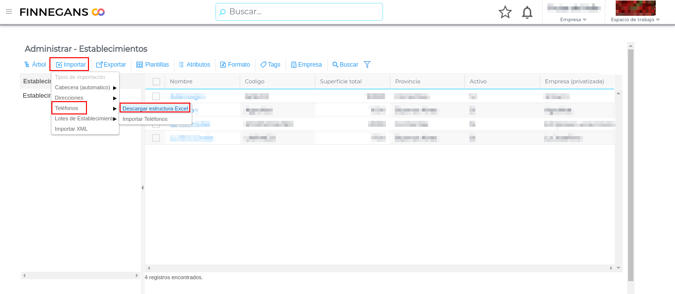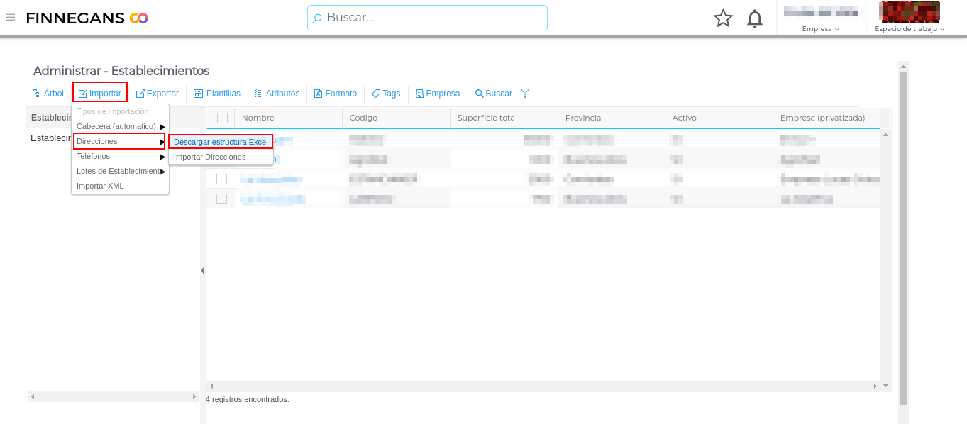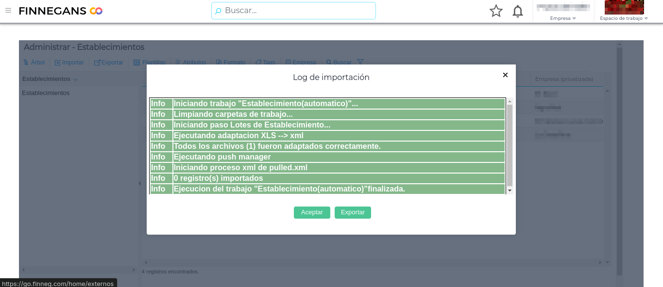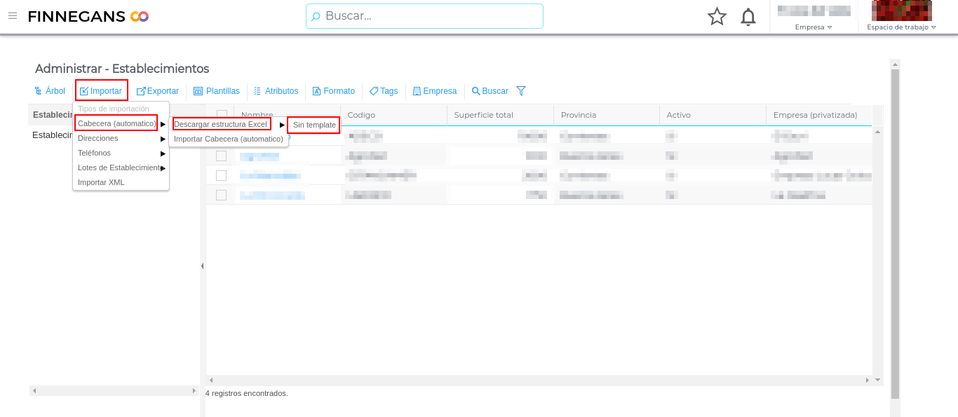 Desde la vista de “Administrar” en “Establecimientos” se procede de similar modo al botón importar: