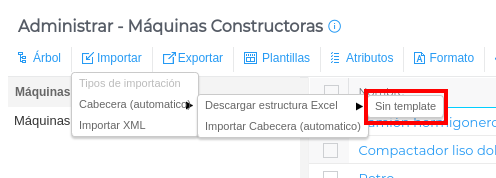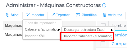 Completada la plantilla, se importa a través de la opción Importar cabecera (automático):