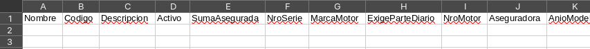 - Codigo: Clave de identificación del registro. Debe ser único y no estar presente en el sistema. Esto puede generar la pérdida de la información previa. (Requerido)