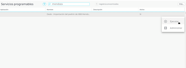 Si bien el padrón ya se ejecuta una vez realizadas las configuraciones detalladas, en caso de necesitar ejecutarlo nuevamente, por ejemplo, para tomar uno más reciente o porque realizaste algún cambio, se podrá realizar a mano haciendo click en el botón