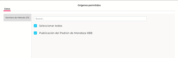 En la solapa “Orígenes permitidos” si bien aparecen seleccionados todos los métodos, solo dejar seleccionado el correspondiente a la provincia.