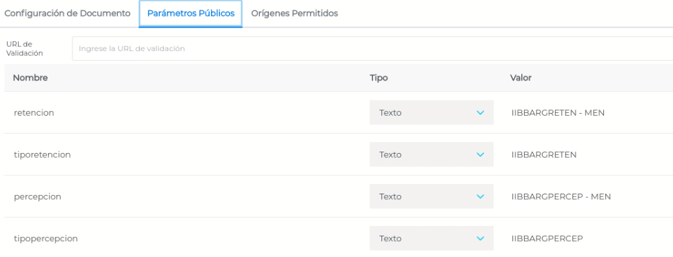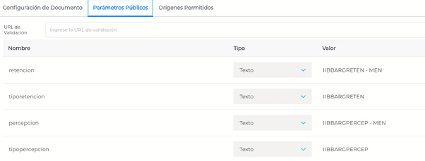 Dentro de la solapa “Parámetros Públicos” observamos la columna “Valor”, la cual también traerá la información completa por default, pero podrá ser modificada manualmente.