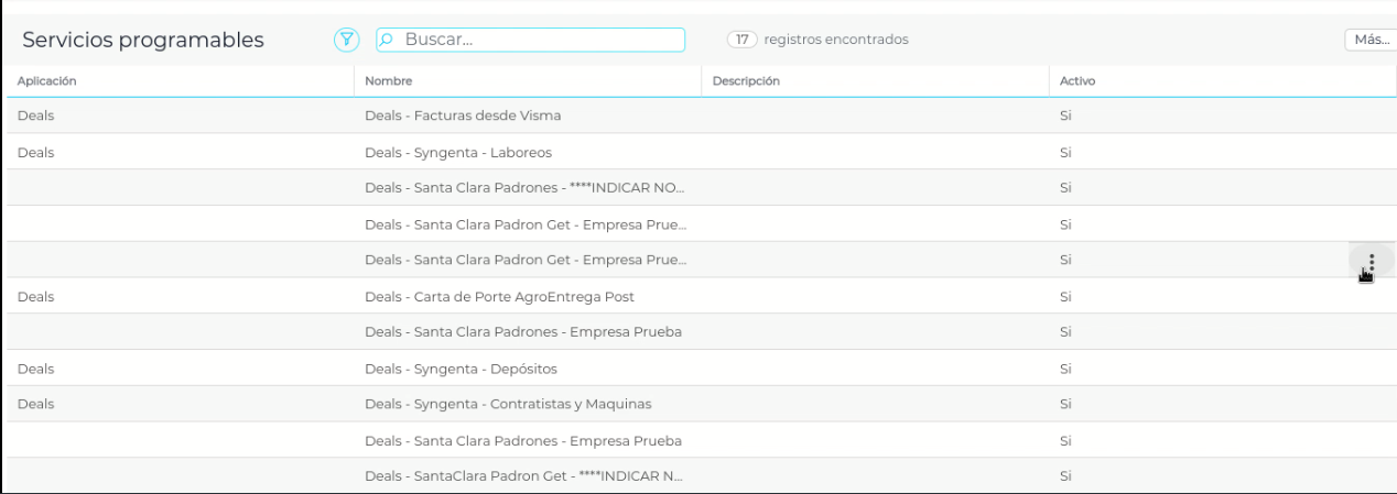 Una vez que entramos a la vista, y luego de haber realizado las configuraciones mencionadas anteriormente, podemos ver que automáticamente se generará una línea en los “Servicios programables”: