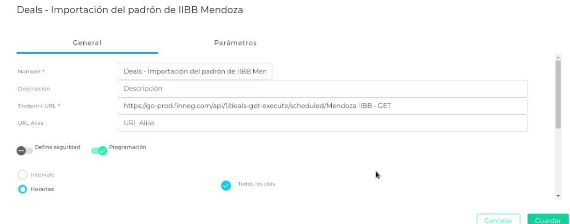 En la solapa “Parámetros” la información se encuentra cargada por default. No hace falta modificar nada.