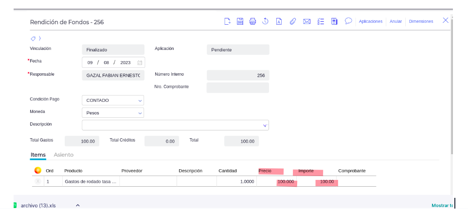 Consulta: Se desea que al importar una o varias rendiciones de fondos el sistema lo muestre de forma correcta:
