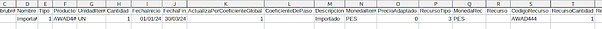 La siguiente imagen muestra la estructura de la plantilla de Excel que servirá para poder importar los ítems.