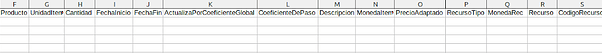 - CodigoRecurso: se coloca el código que tiene el recurso dentro de su maestro respectivo (maestro de Productos si se trata de un material, maestro de Funciones si se trata de una función, maestro de Máquinas Constructoras si se trata de una maquinaria). Es opcional.
