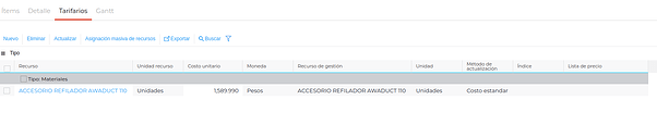 - Recurso costo unitario: se indica el costo unitario del recurso.