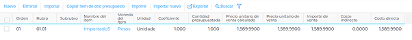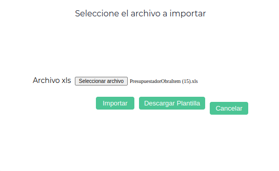 Una vez que se ingresó al Presupuestador, para realizar la importación masiva de ítems y recursos, sea dentro de las solapas de Ítems o Detalle, se debe descargar el template para luego poder realizar la importación.