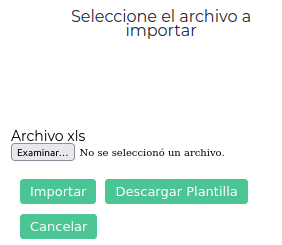Ahora, para realizar la importación del archivo, se debe presionar el botón Examinar y elegir la plantilla ya completa. Una vez elegida, clickear en el botón Importar