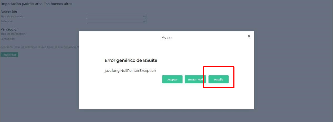 Al intentar cargar el padrón de percepciones de ARBA aparece el siguiente error: