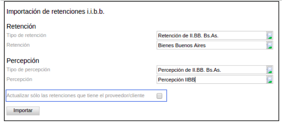 Además, en la importación existe el campo Actualizar sólo las retenciones que tiene el proveedor/cliente.