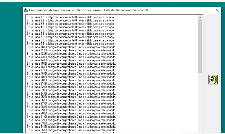 Al importar el TXT de SICORE, se visualiza el siguiente mensaje: “En la línea x El código de comprobante 0 no es válido para este periodo”.