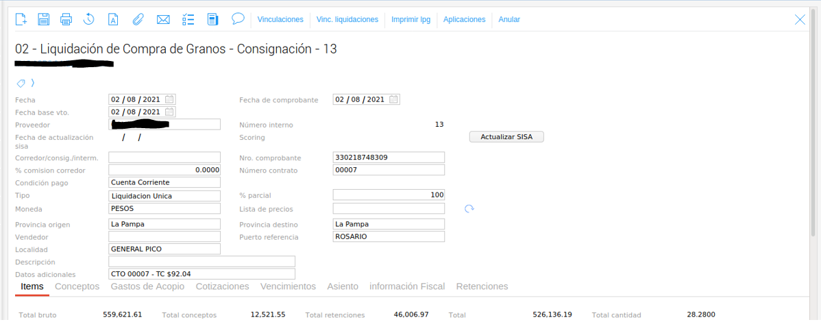 GRANOS > COMPRAS > LIQUIDACIÓN