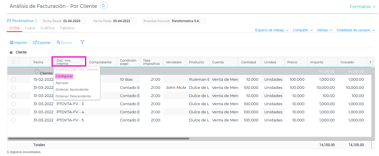 Al imprimir un reporte, no se imprimen todas las columnas que están visibles. ¿Cómo imprimir las columnas deseadas de un reporte?