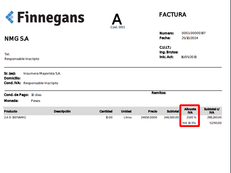 Al intentar imprimir el comprobante de una factura (en éste caso venta) el impreso expresa incorrectamente el porcentaje de IVA.